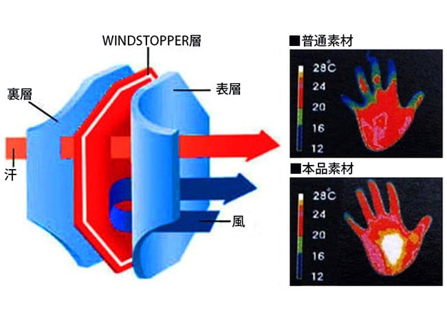 ・特殊加工の生地使用で防風・冷たい風をシャットアウト
