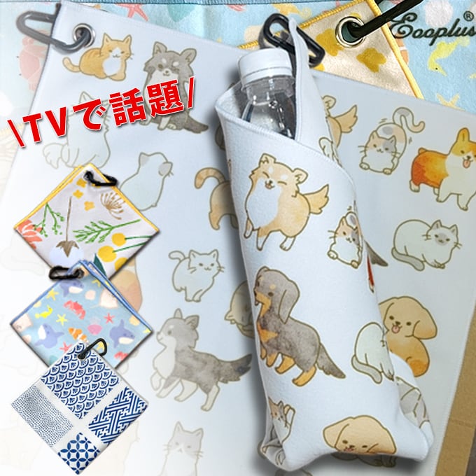 - 【ワンニャン】Eooplus カラビナ付くっつくタオル