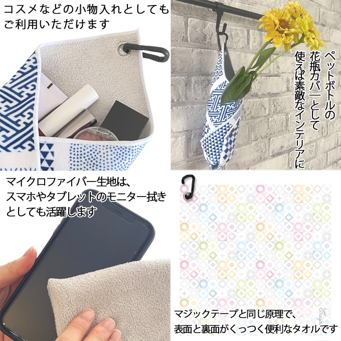 - 【モザイク】Eooplus カラビナ付くっつくタオル