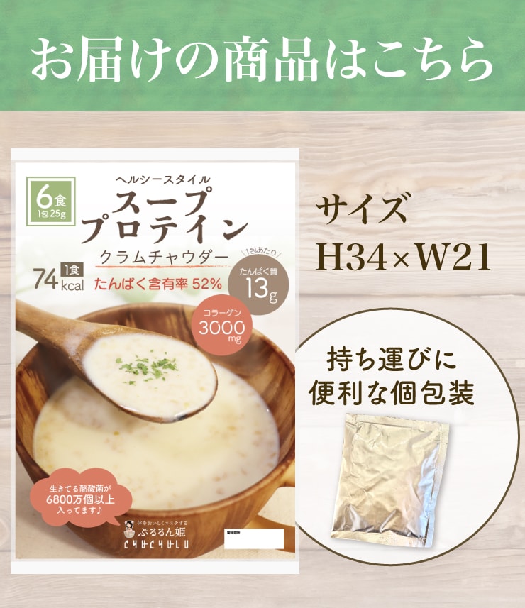 【6食】スーププロテイン クラムチャウダー | 高たんぱく質+コラーゲン3000mg+酪酸菌の力で美味しく美容・健康・ダイエットを叶える!