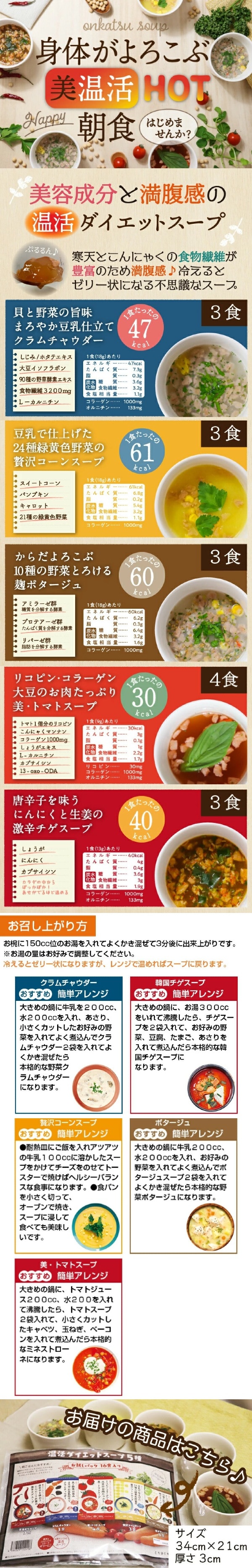 - 【計16食】寒天とこんにゃくでとろ~り温活ダイエットスープ5種セット