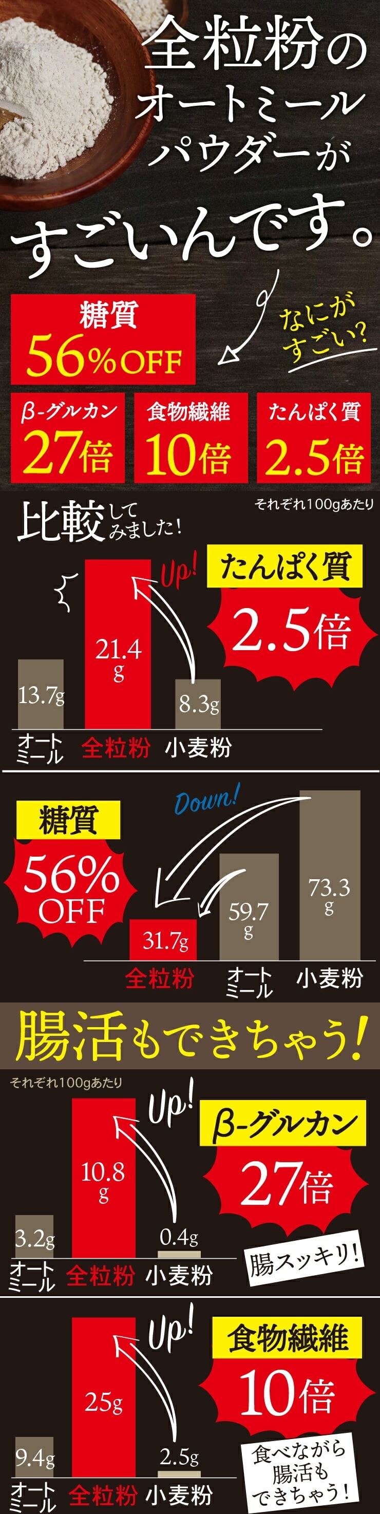 【500g】グルテンフリーで低GI!全粒粉 すごいオートミールパウダー | 小麦粉の代わりに使える!食物繊維もたっぷりで低糖質ダイエットにぴったりのアイテム♪