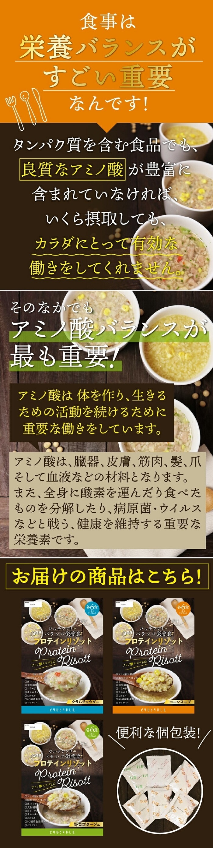 【3種/計18袋】美容プロテインリゾット(コーンスープ・野菜ポタージュ・クラムチャウダー各6袋) | 間食・夜食に!罪悪感ゼロ♪タンパク質チャージ!食物繊維でスッキリ!満腹感を実感!