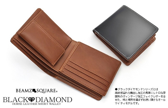 - BEAMZSQUARE ブラックダイヤ 馬革 二つ折り財布 BZSQ-1732
