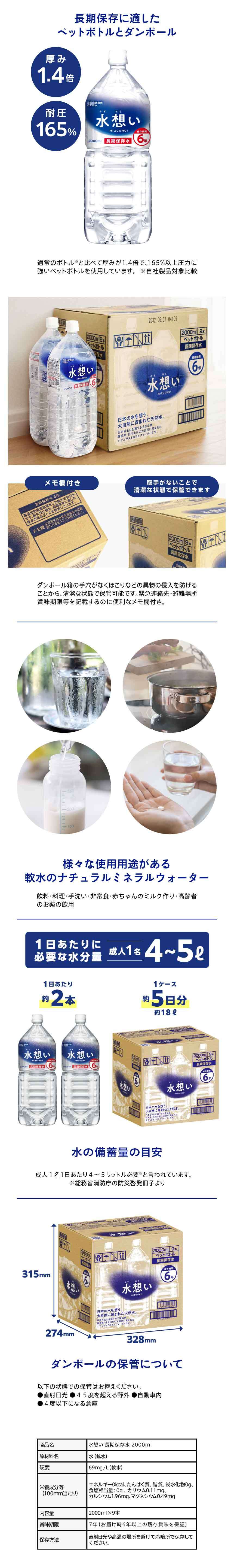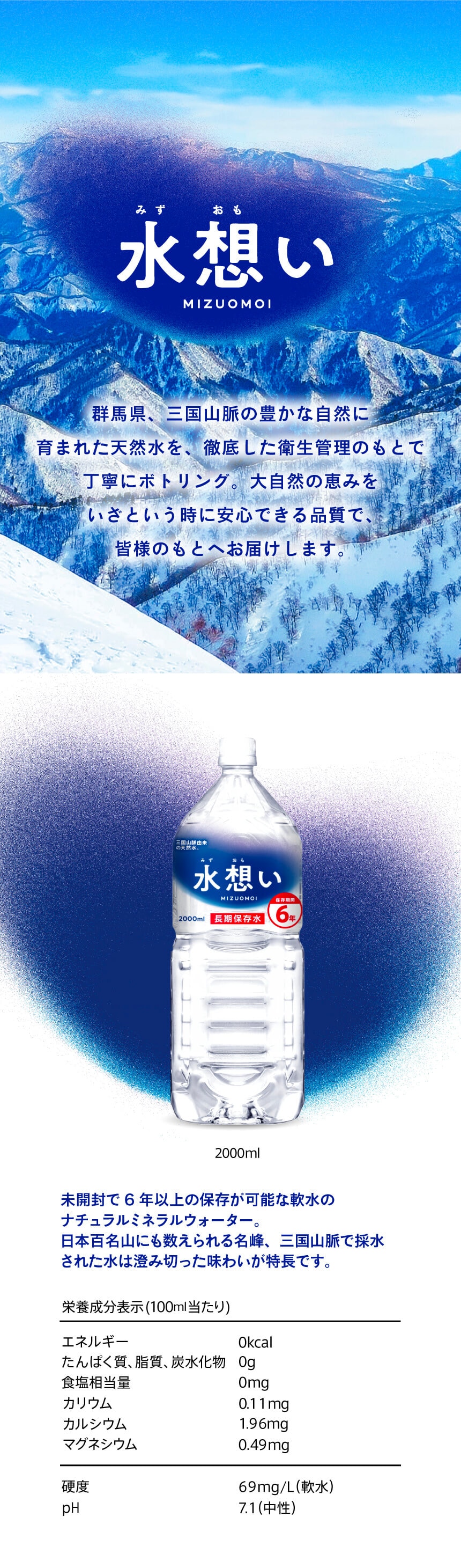 【2L×9本】水想い 6年長期保存水 ナチュラルミネラルウォーター 保存水 軟水 防災 備蓄用 | 防災・備蓄・災害対策におすすめ 長期保存水