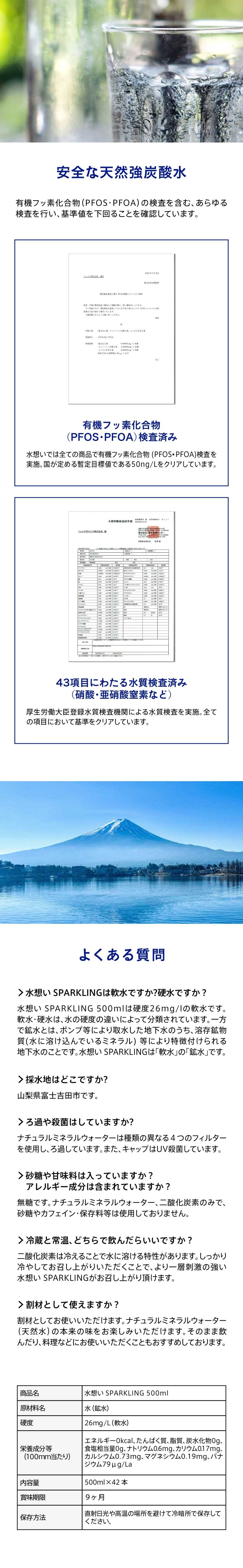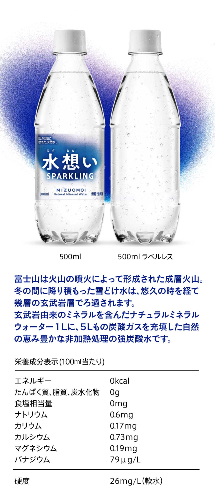 【500ml×42本】水想いスパークリング 強炭酸水 500ml ラベルレス 無糖 | 広大な「富士山」の地層で磨かれた軟水の"国産の雪どけ天然水”を使用した強炭酸水