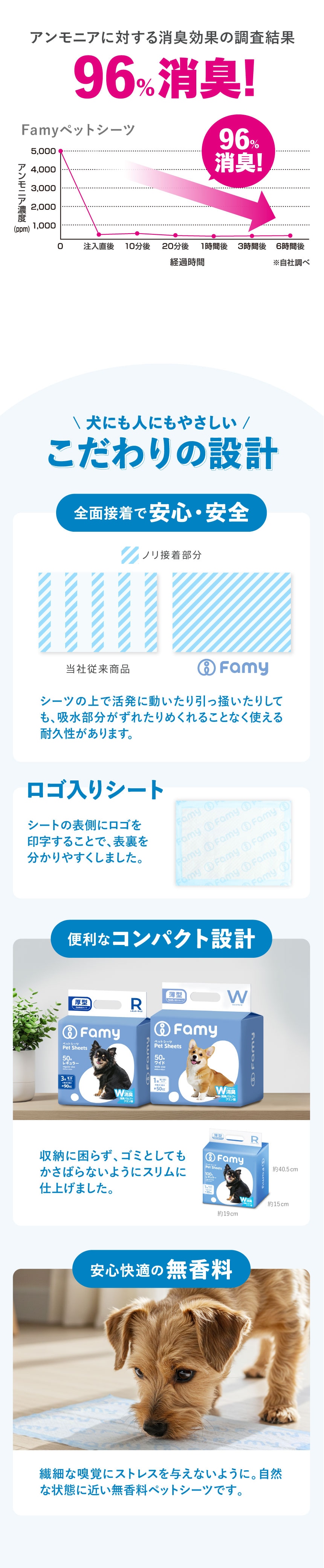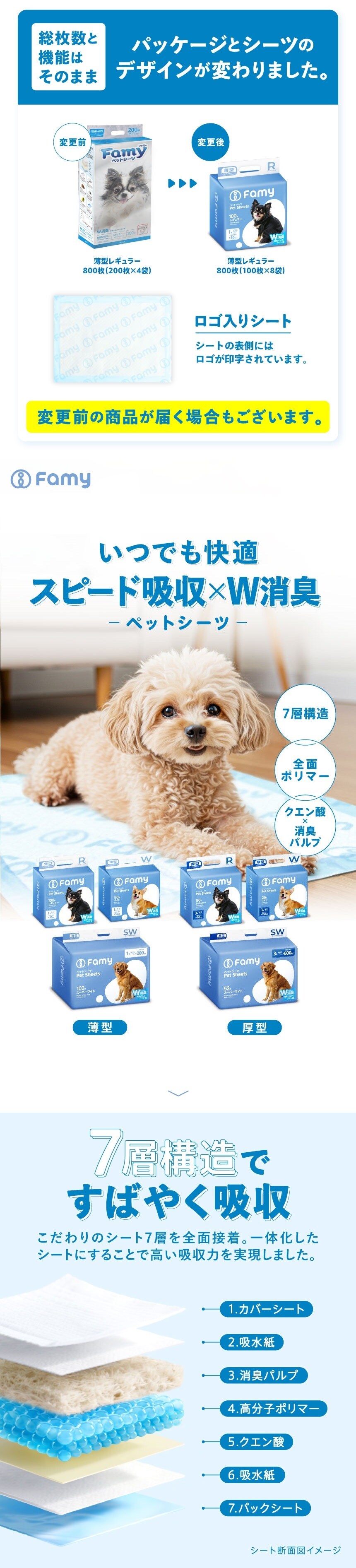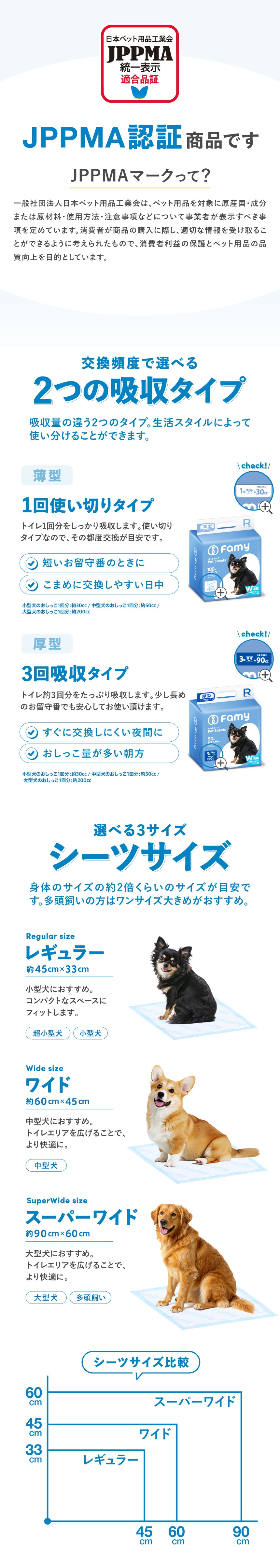 【204枚】Famy ファミー ペットシーツ薄型 スーパーワイド/ダブル消臭 1回使い切りタイプ | W消臭機能がついてリニューアル!こだわりの7層構造。JPPMA認証の安心安全なペットシーツ