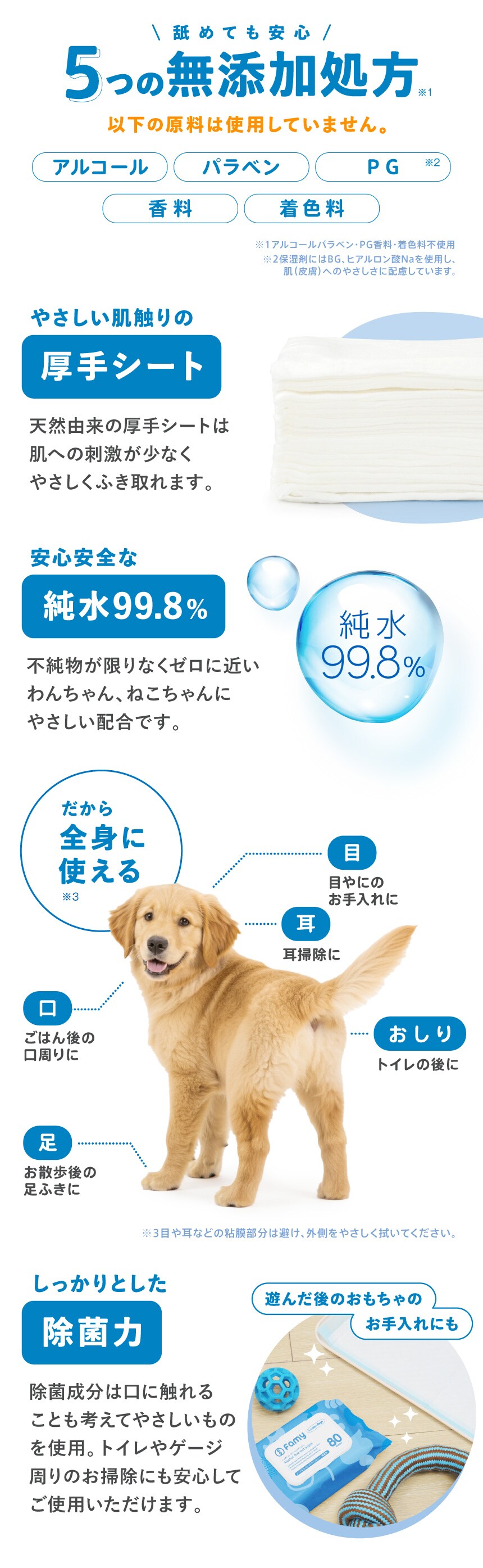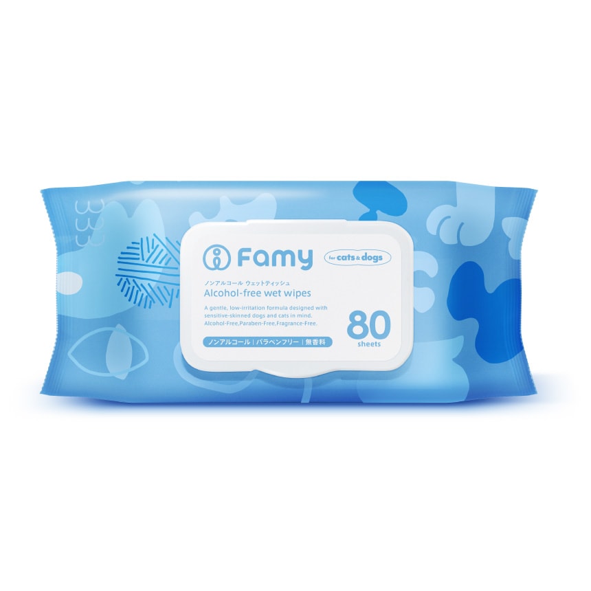 - 【960枚 (80枚×12個)】Famy ペット用 ウェットティッシュ ふた付き トイレに流せる
