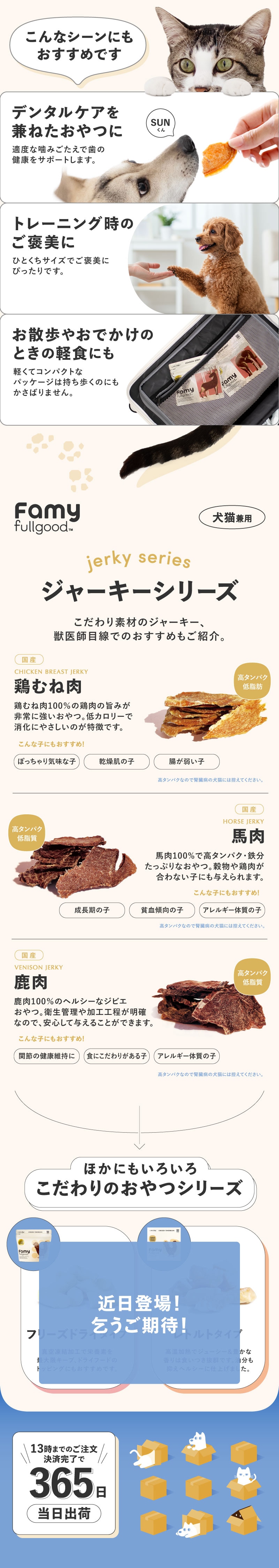 【40g×2袋セット】Famy fullgood 犬猫用ジャーキー薄切り馬肉 | 獣医師推奨 おやつ 無添加 国産 ヒューマングレード