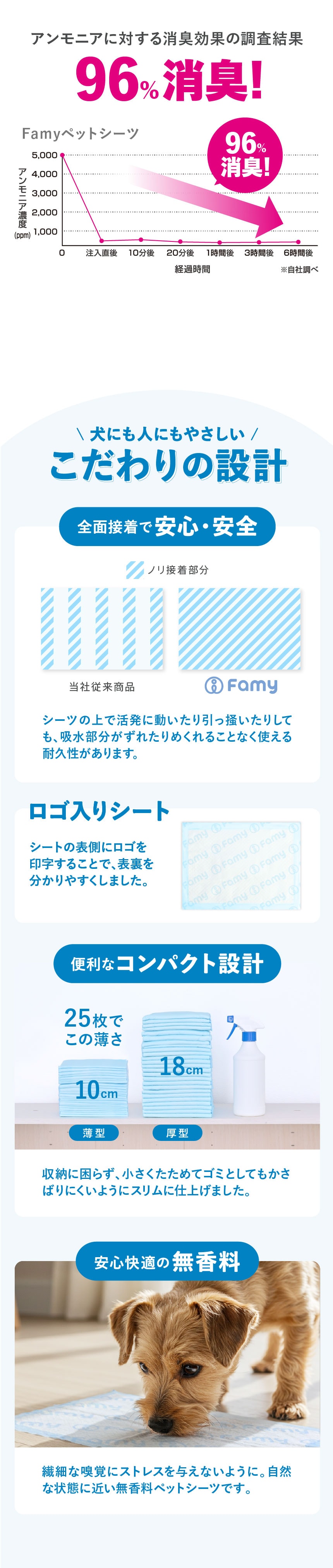【648枚】Famy ファミー ペットシーツ 大容量タイプ 厚型 レギュラー /ダブル消臭 | ダブル消臭機能を備えたこだわりの7層構造と全面接着シーツで安全で快適なペットシーツ