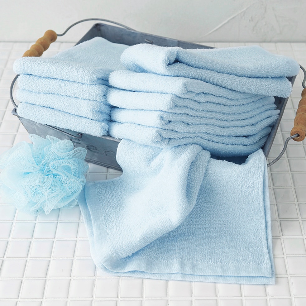 フェイスタオル【ライトブルー 20枚セット】 | 綿100パーセントでお肌にやさしい 薄手で丈夫なガムシャタオル