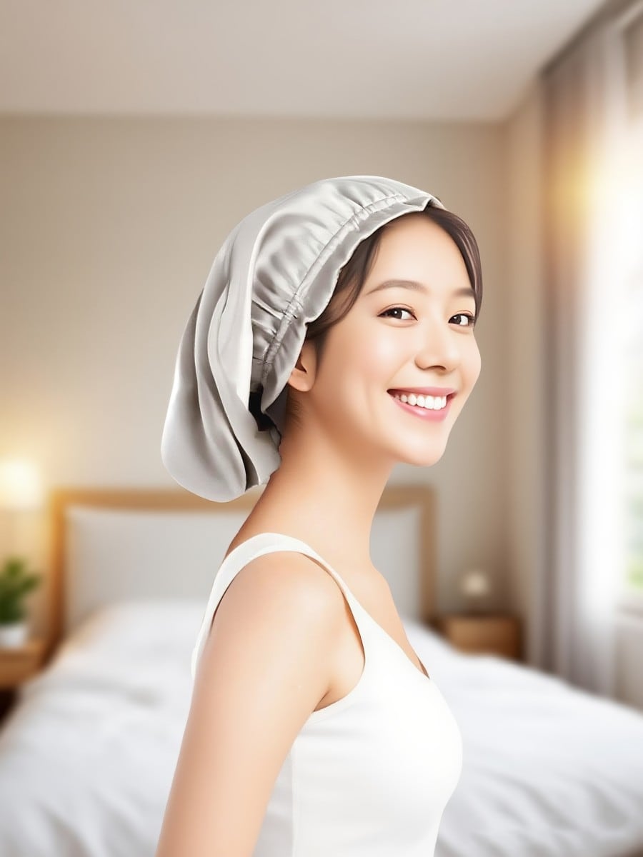 ナイトキャップは髪を覆うので、適度な保湿をされ、乾燥を防ぎます。