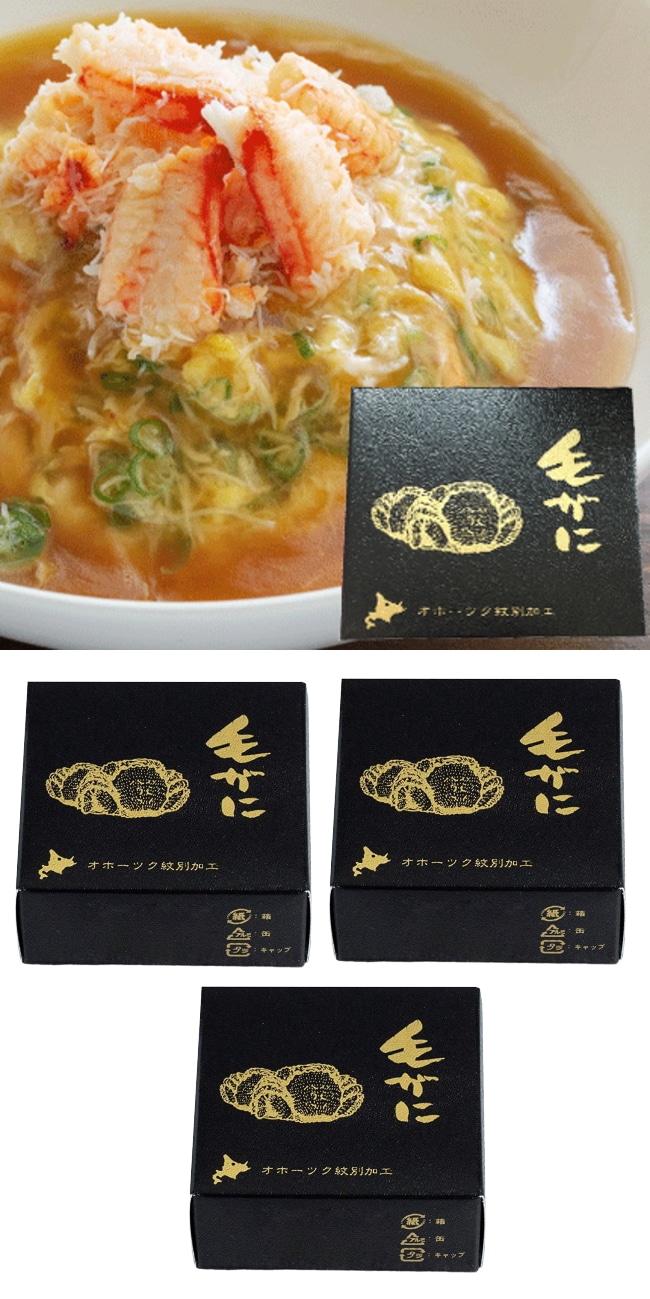 - 【3缶セット】毛がに(脚肉入り)水煮缶詰 (内容総量80g 固形量55g)