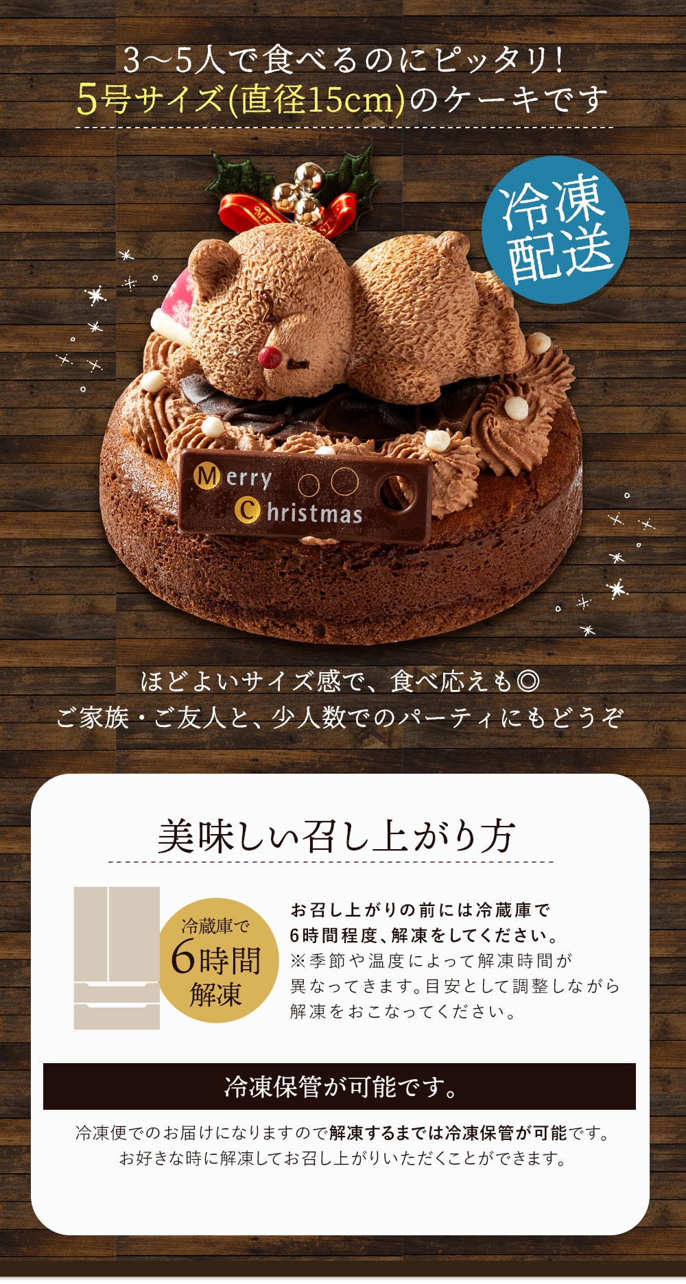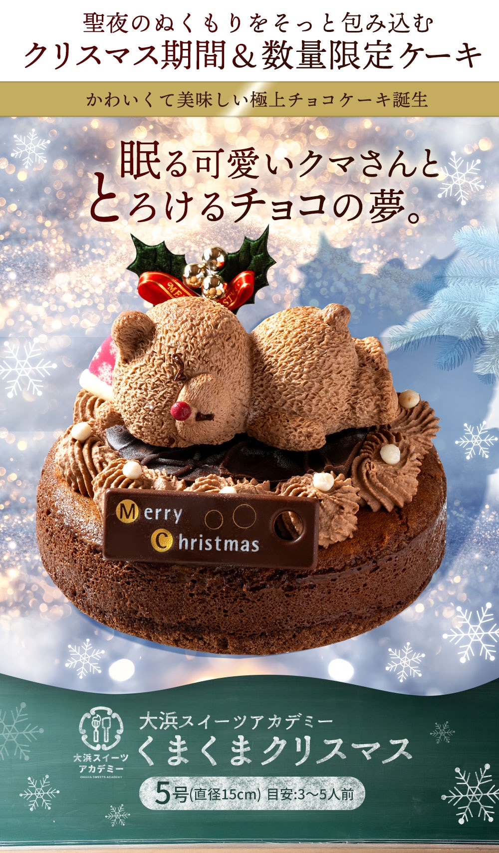 【12/24着】 【5号】 くまくまクリスマス | かわいさと本格的な味わいを兼ね備えたチョコレートケーキ