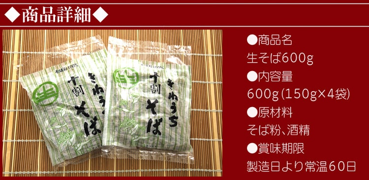 【600g(150g×4袋)】十割生そば | 独自のきねうち製法で十割なのにツルツル食感!?温・冷どちらでも美味しく召し上がれます