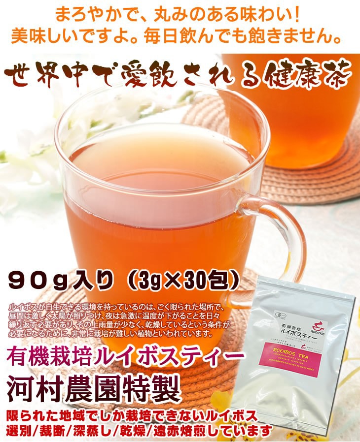 【30包】河村農園特製のルイボスティー90g(3g×30包) | 有機JAS認定業者☆選別、裁断、深蒸し、乾燥、遠赤焙煎、パッケージまでを自社工場で一貫作業