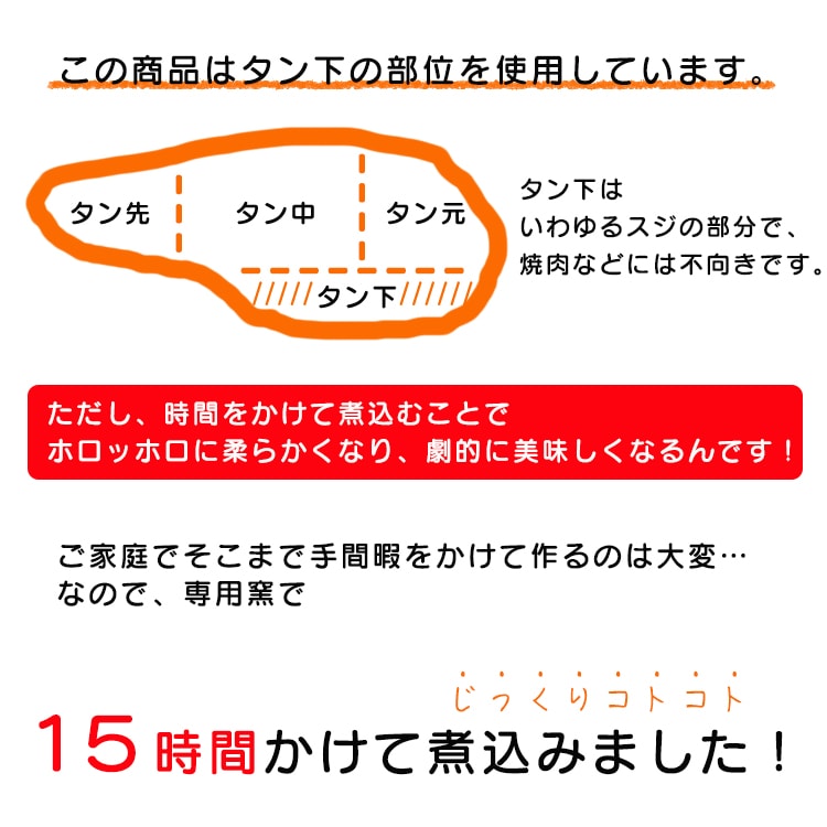 牛タンのタン下の部分をホロホロになるまで煮込んだ商品です。