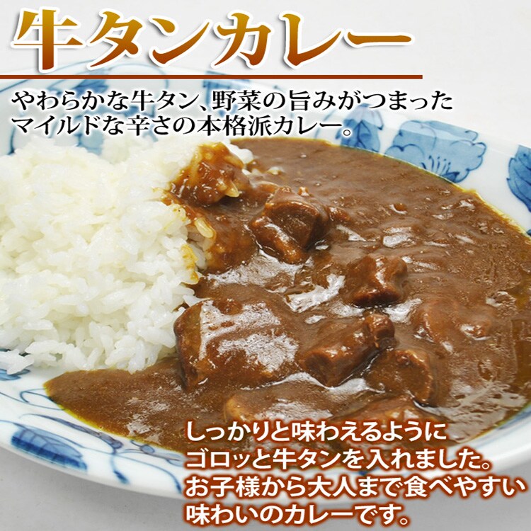 本場仙台の牛タン加工業者さんがお得に美味しく作った本格的な牛タンカレー!口に含むとホロホロにほどけるやわらか牛タンがゴロっとたっぷり入った大人からお子様まで食べやすい味わいの牛タンカレーです。