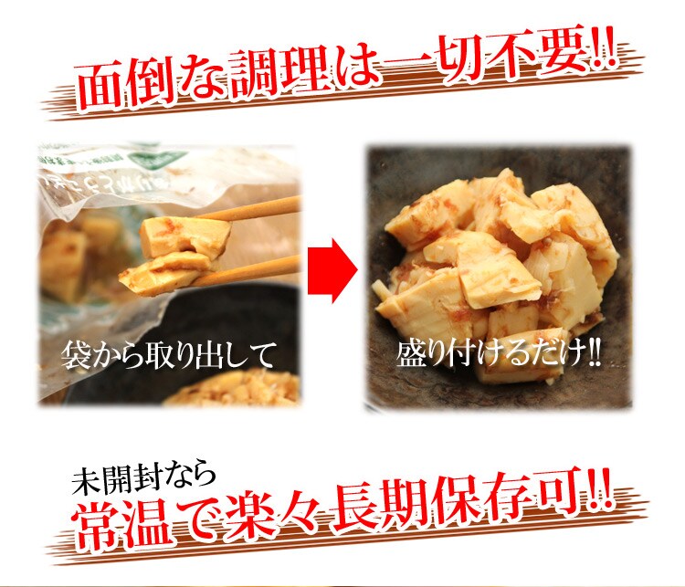 たけのこ水煮(中国製造)、砂糖、醤油(小麦を含む)、昆布エキス、米醗酵調味料、かつお節、食塩、かつお節エキス、調味料(アミノ酸)、ビタミンC