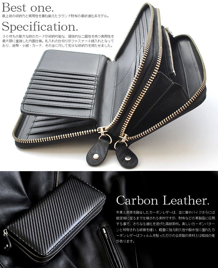 そのカーボンレザーをふんだんに使い作成された大容量の長財布、