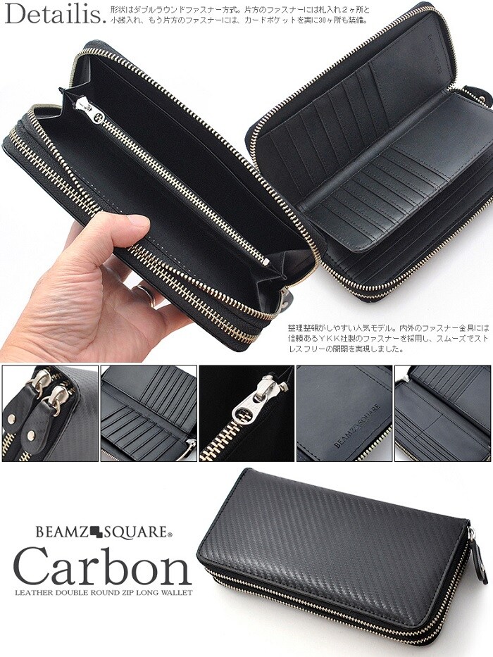 BEAMZSQUARE カーボンレザーダブルラウンドファスナー長財布 BZSQ-955 | 大容量Wファスナー長財布/機能性抜群のスタイリッシュウォレット