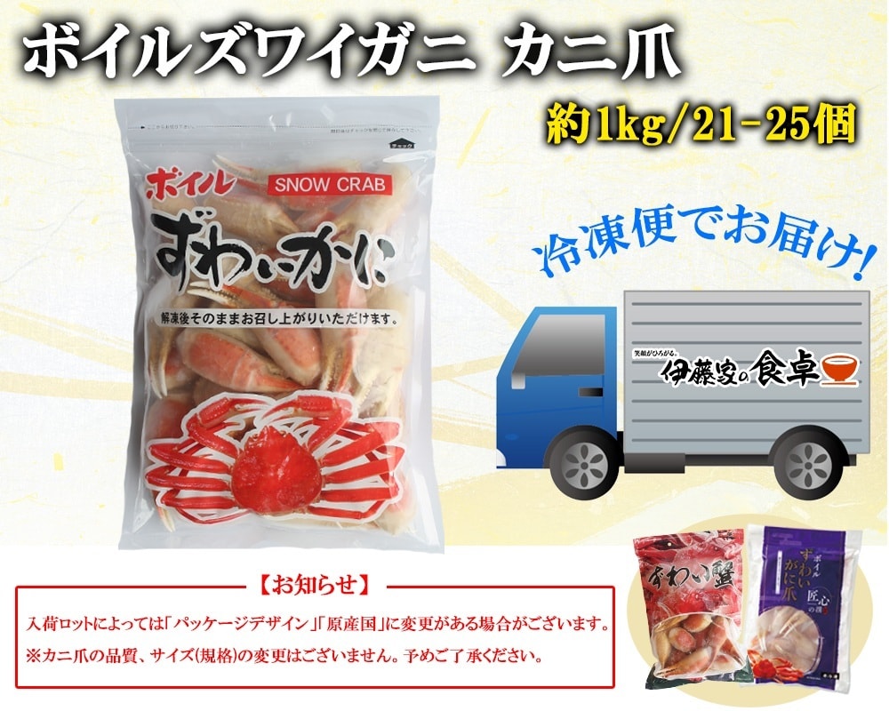 【1kg/4Lサイズ(21-25個)】ボイルズワイガニ カニ爪ポーション