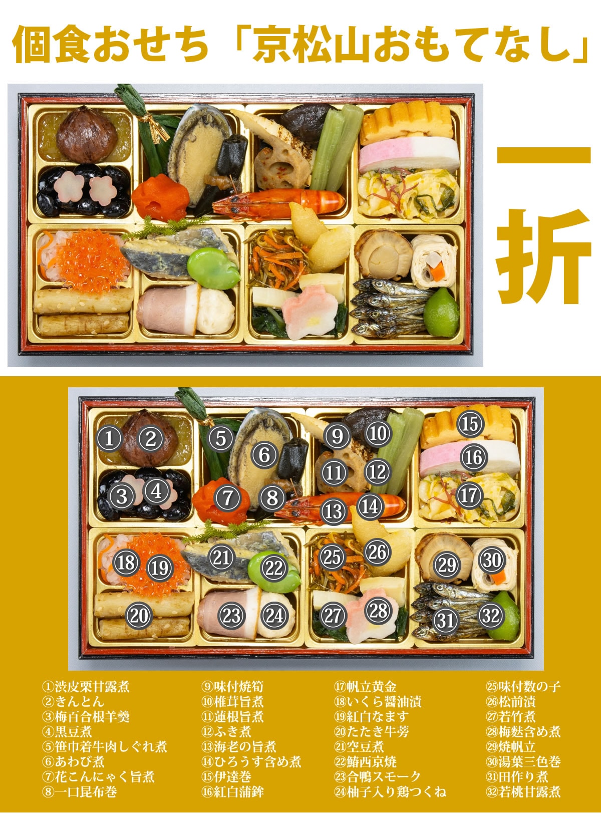【12/29着】京都しょうざん個食おせち料理「京松山おもてなし」二折(2人前/32種32品) | 京都しょうざんリゾートのおせち