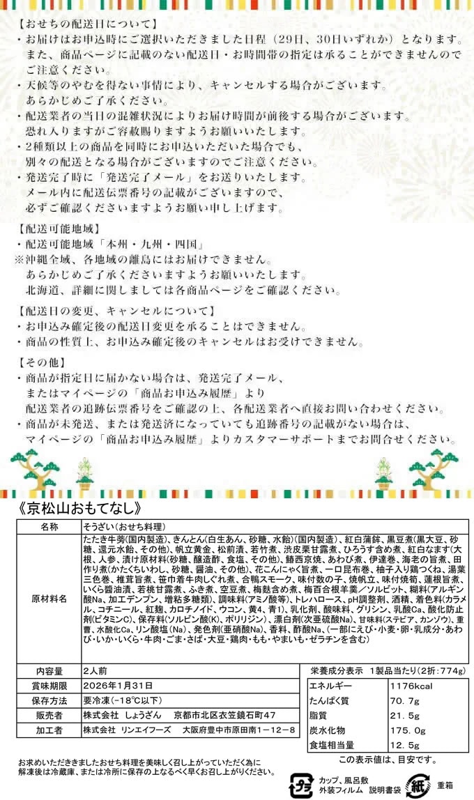- 【12/29着】京都しょうざん おせち「千寿閣」(与段重/4...