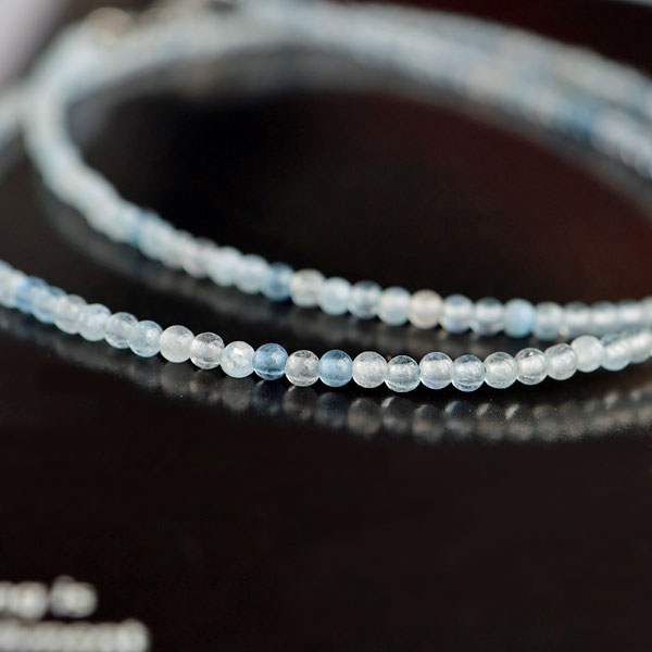 【40cm/アクアマリン 2mm】パワーストーン ネックレス | 控えめの大きさがおしゃれな雰囲気を高める【誕生石・3月・水色・ブルー】