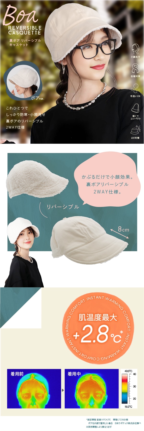 【アイボリー】裏ボアリバーシブルキャスケット | これひとつでしっかり防寒・小顔見せ 裏ボアリバーシブル2WAY仕様 サイズ調整付き