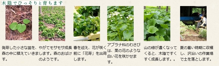 深い森の中で育ったわさびの茎や根を原料に練りわさびを作りました。
