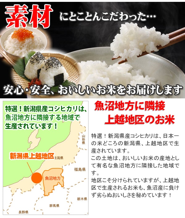新潟県の中でもA地区に認定されていて、魚沼地方に隣接する上越地方のコシヒカリを使用。