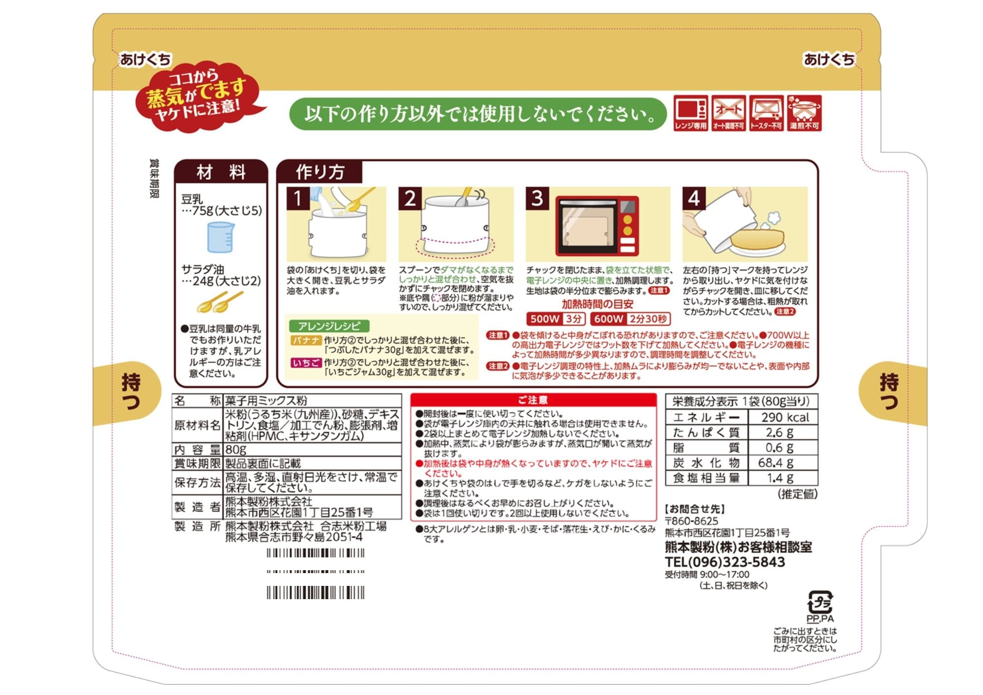 【6袋】レンジで3分!グルテンフリーケーキミックス(プレーン)国産米粉使用 | 袋のまま調理可能!レンジで簡単にグルテンフリーケーキがつくれる♪ 8大アレルゲン不使用