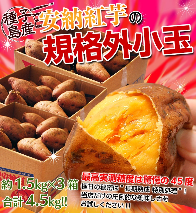 - 【予約受付】10/20~順次出荷【約4.5kg/約1.5kg×3箱】鹿児島県『安納紅芋』規格外小玉