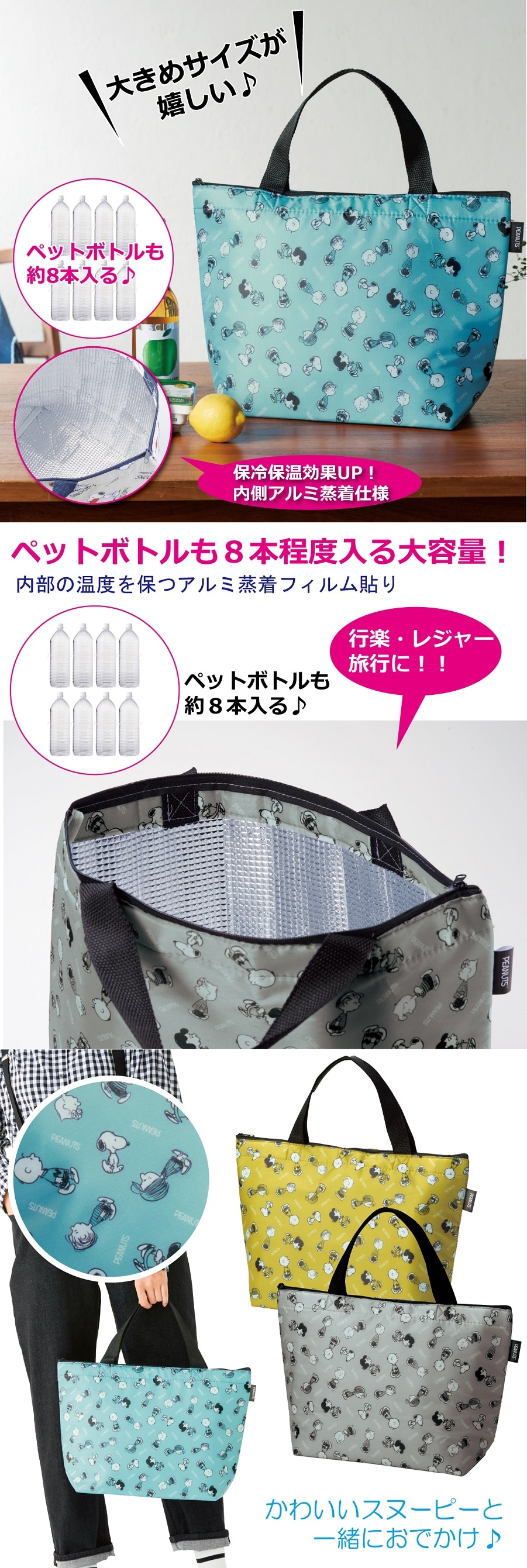 【初回限定】NEWスヌーピー保冷保温BIGトートバッグ/ペットボトルが約8本入る! | 内部の温度を保つアルミ蒸着フィルム貼り!飲み物や食材を入れたり、アウトドアシーンで大活躍!