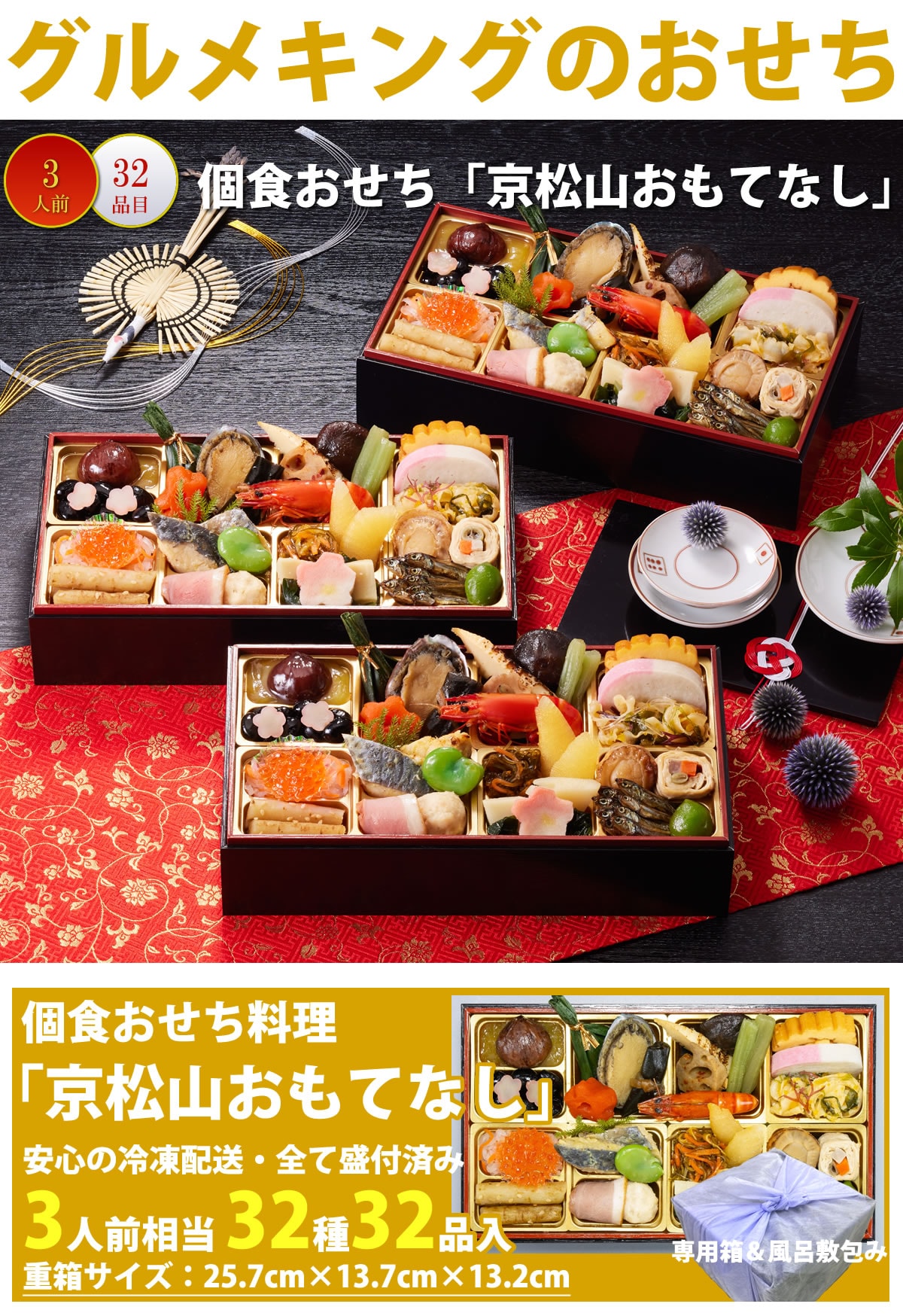 【12/29着】京都しょうざん個食おせち料理「京松山おもてなし」三折(3人前/32種32品) | 京都しょうざんリゾートのおせち