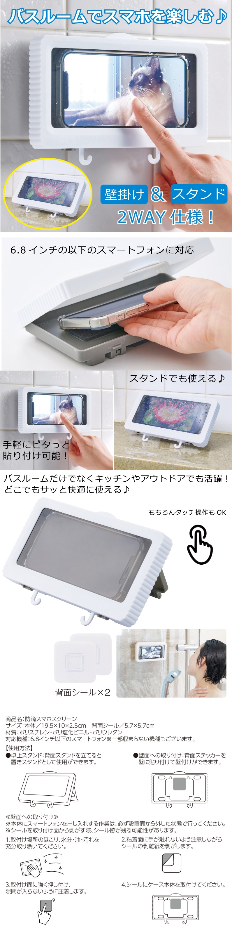 2WAY!スマホスクリーンケース | バスルームやキッチンでスマホが使える♪壁掛け・置き、どちらもOK!