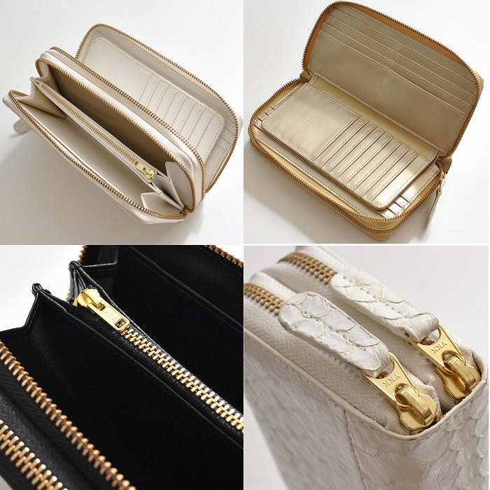 大判鱗の錦蛇革を使用したダブルファスナーのラウンド長財布。