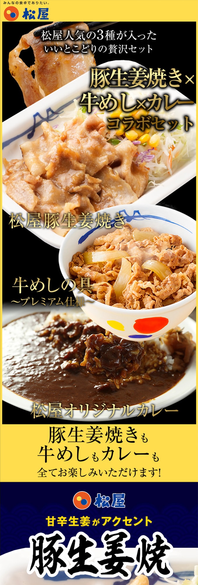 - 【松屋豚生姜焼き&プレミアム仕様牛めし&松屋オリジナルカレー30食セット】