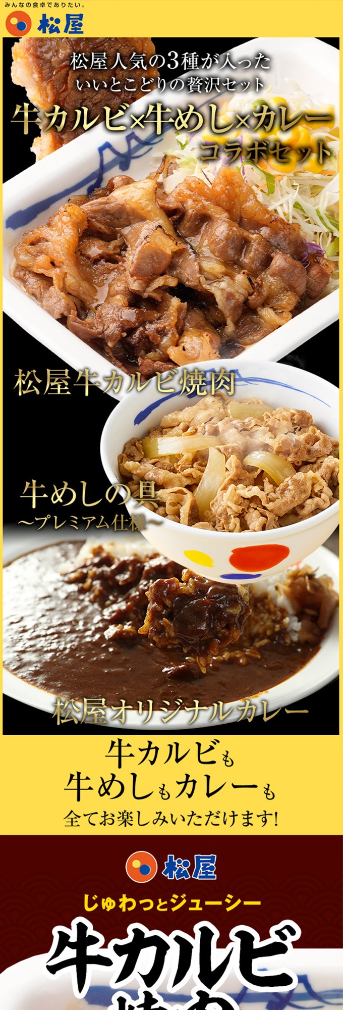 - 【松屋牛カルビ焼肉&プレミアム仕様牛めし&松屋オリジナルカレー30食セット】