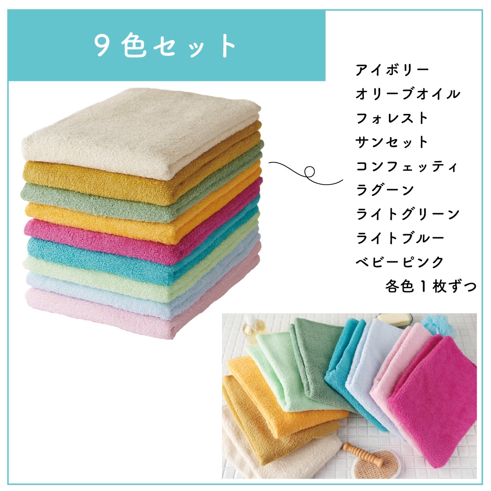 バスタオル《 9色セット 》 | 早く乾いて毎日洗える薄手のバスタオル|綿100パーセント お肌に優しいガムシャタオル