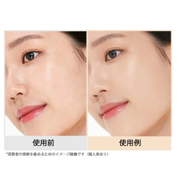 ・使用方法:専用パフにクッションのリキッドを軽く付けた後、顔全体を中側から外側の方に軽くたたきながらなじませます。
