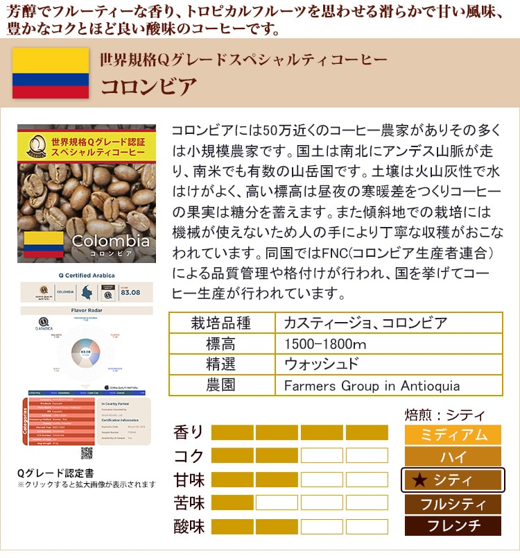 - ■コロンビア世界規格Qグレードスペシャルティ珈琲豆 /500g入袋×2袋