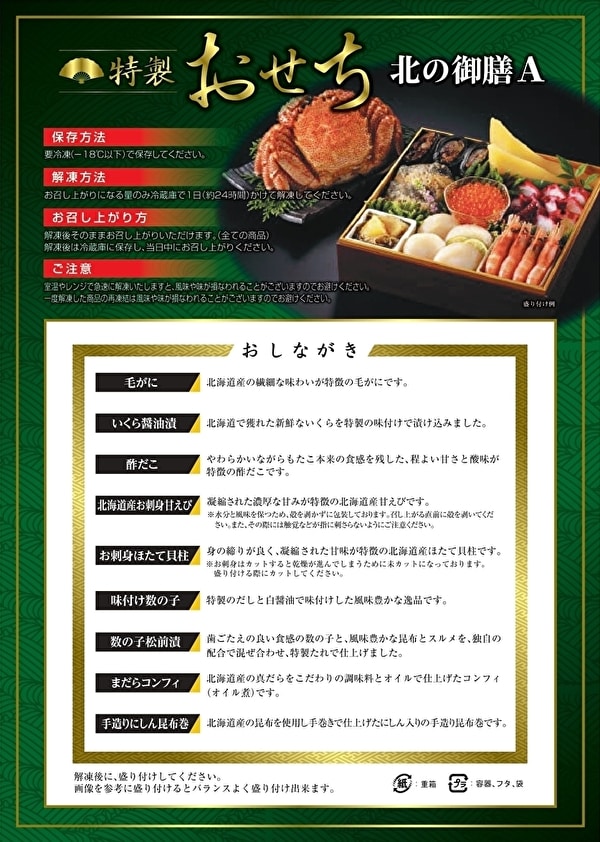 【12/29着】毛ガニ入り特製おせち「北の御膳A」(約2-4人前・9品目) | 新たな一年を迎えるにふさわしい北の美食おせち膳