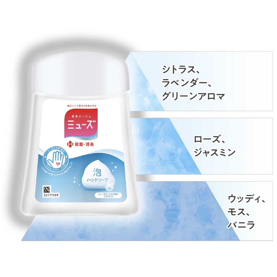 ※ミューズ ノータッチ泡ハンドソープ自動ディスペンサーにセットして使用しない場合には、泡になりませんので泡立ててご使用ください。