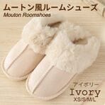 - 【アイボリー/Mサイズ(25-25.5cm)】ムートン風ルームシューズ