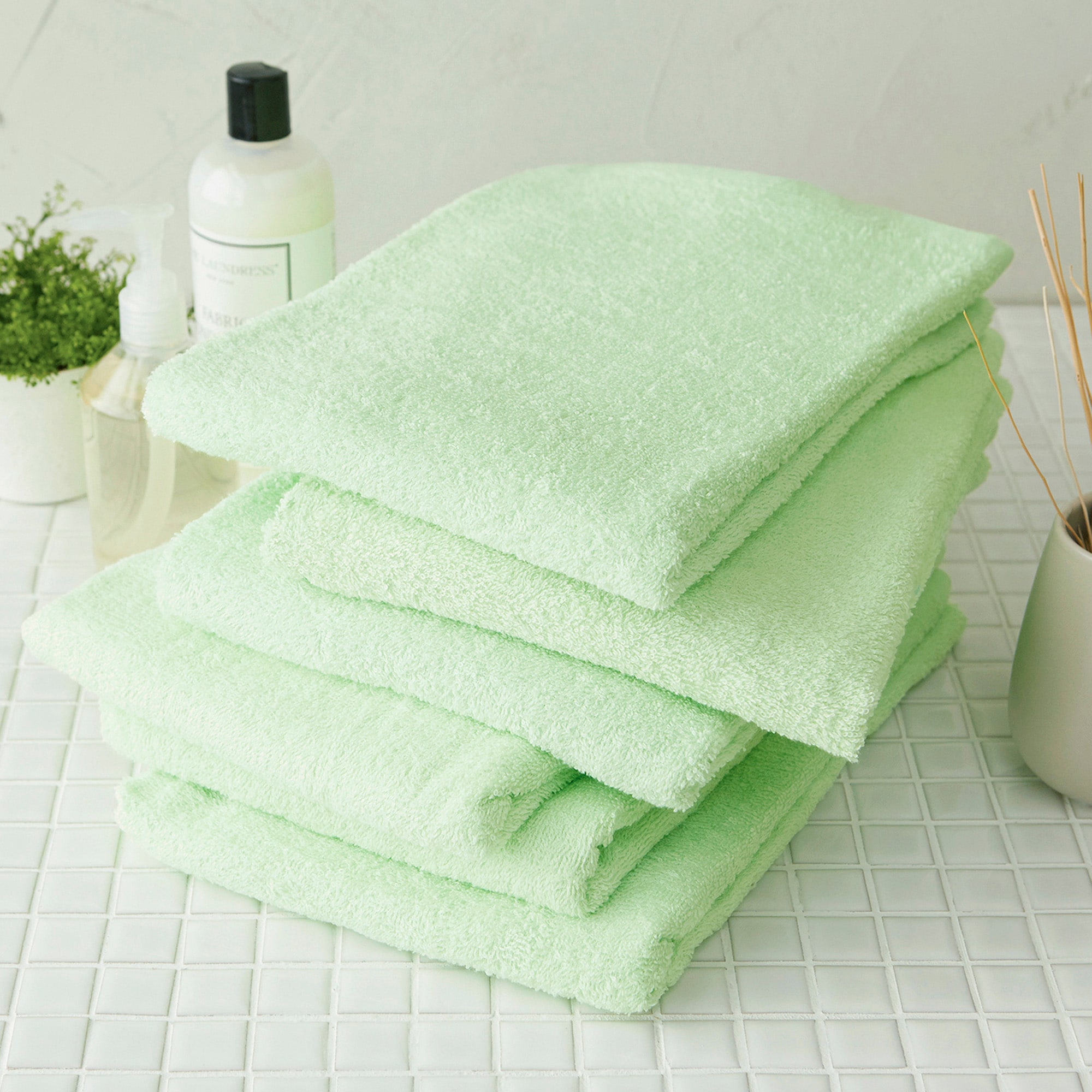 バスタオル《ライトグリーン 6枚セット》 | 早く乾いて毎日洗える薄手のバスタオル|綿100パーセント お肌に優しいガムシャタオル