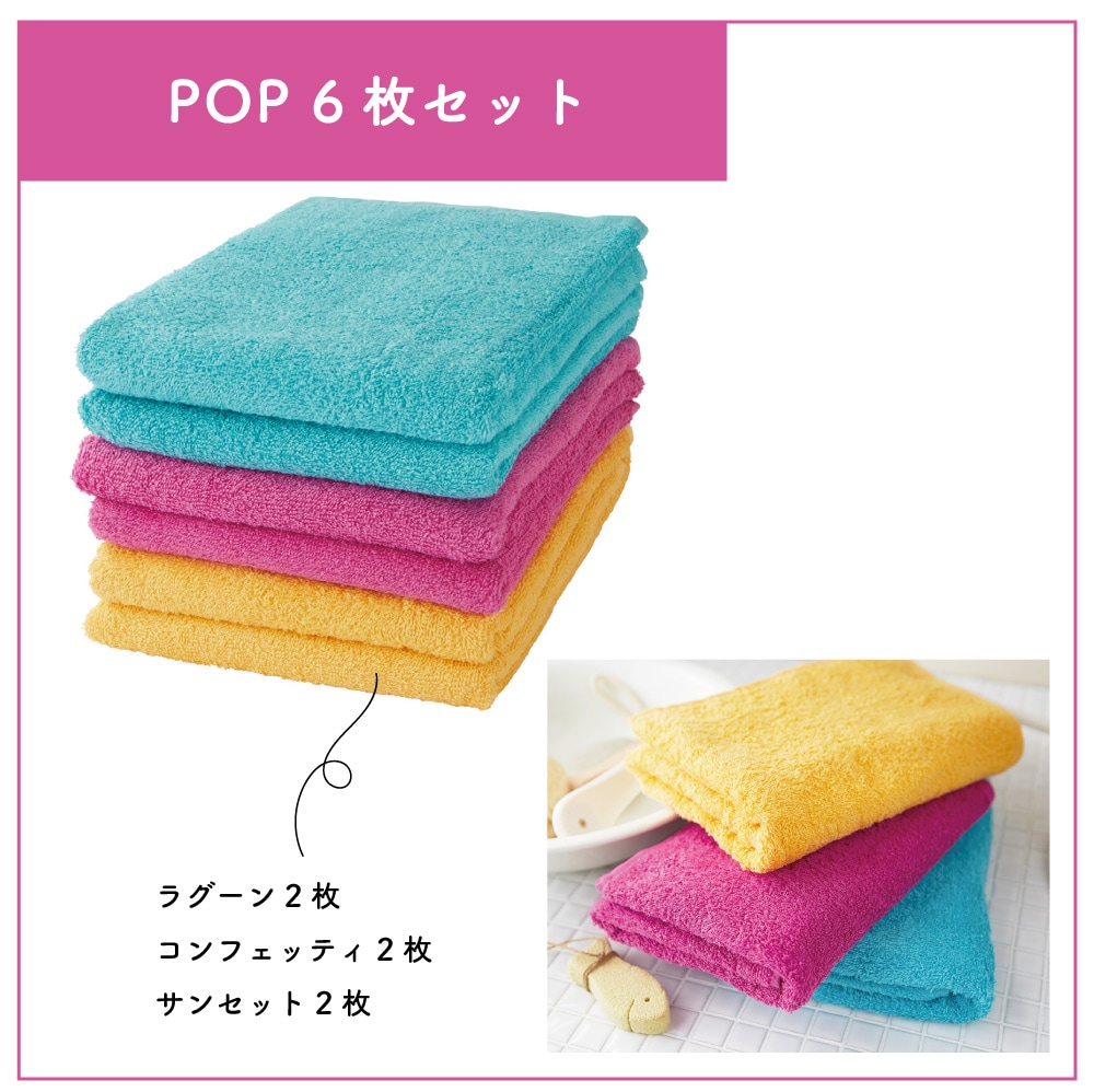 バスタオル《POP 6枚セット》 | 早く乾いて毎日洗える薄手のバスタオル|綿100パーセント お肌に優しいガムシャタオル