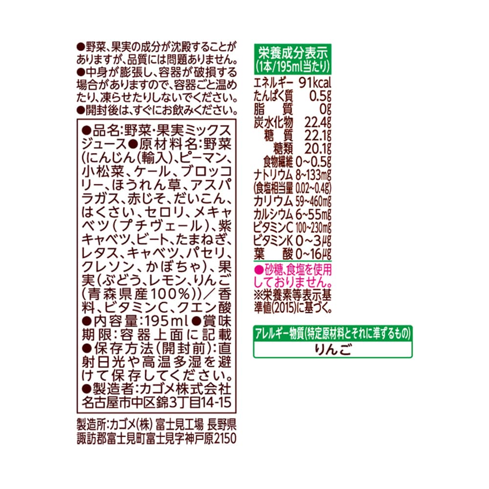 カゴメ 野菜生活100 青森りんごミックス 195ml×48本 | 青森県産りんごの甘くて美味しい味わい
