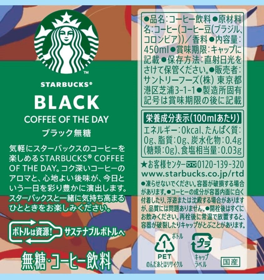 サントリー スターバックス COFFEE OF THE DAY ブラック 450ml×24本 | スターバックスPETコーヒー ブラック